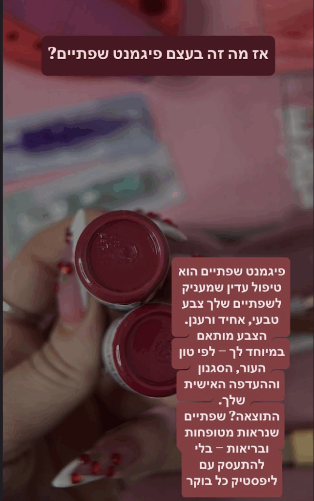 פיגמנט שפתיים הוא טיפול מיקרופיגמנטציה שמוסיף לשפתיים גוון טבעי ואחיד